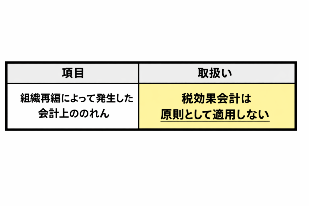 組織再編によって発生した会計上ののれんについては、原則として税効果会計は適用されません。