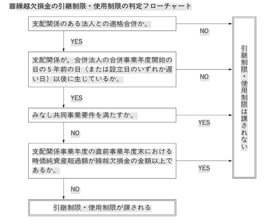 | Step4 | 支配関係事業年度の直前事業年度末における時価純資産超過額が繰越欠損金以上か | 満たせば制限なし、満たさなければ制限あり |